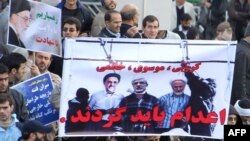 Телевизиони Эрон сӯҳбатҳои зиндаеро бо иштирокдорони тазоҳурот анҷом дод, ки ҳамагӣ ду раҳбари аввали мухолифон, Мирҳусейн Мӯсавӣ ва Меҳдии Каррубиро масъули ҳамаи талафоти ҷонӣ ва хунрезиҳои ду соли ахир дар Эрон номиданд. Тазоҳургарон ҳамчунин талаб карданд, Каррубӣ ва Мӯсавӣ, ки гуфта мешавад дар ҳабси хонагӣ ба сар мебаранд, эъдом шаванд.