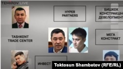 Бар асоси таҳқиқот, Достон Эрмекбой уулу, дӯсти дигари писари президенти Қирғизистон, молики ду ширкати муштарак бо "Tashkent Trade Center" аст. "Tashkent Trade Center" низ ба Ҳабибулло Абдуқодир марбут аст.