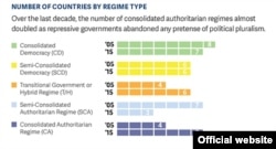 Ба сурати умум, бино ба ин гузориш, рушди демократия дар Авруосиё дар як соли охир нафақат кунд шудааст, балки озодиҳои сиёсӣ дар ин паҳно ба мухолифати нирӯҳое рӯбарӯ шудаанд, ки орзуи шикасти демократия дар ин кишварҳоро дар сар доранд.